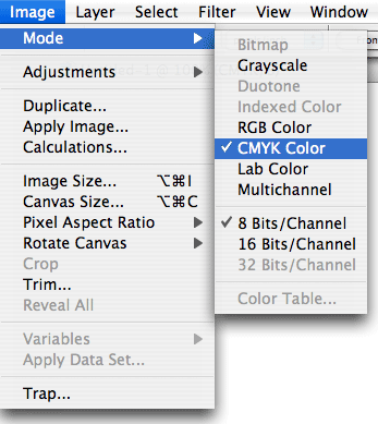 In Photoshop go to IMAGE -> MODE -> CMYK